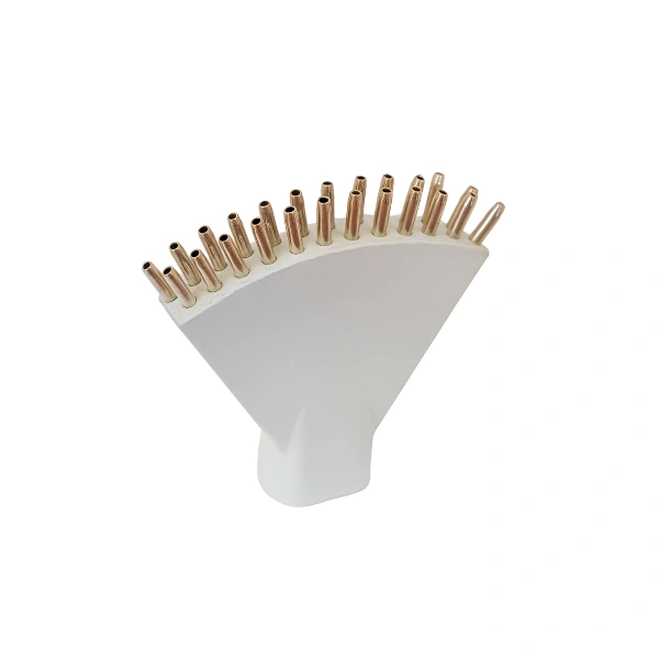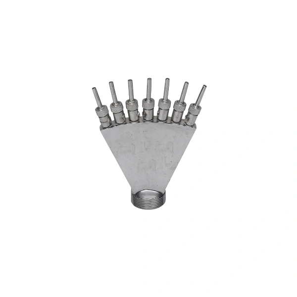 سری نازل خروجی این محصول ثابت بوده و از آنجایی که مایع ورودی به این نازل فشار و سرعت بالایی دارد کیفیت ساخت محصول از اهمیت زیادی برخوردار است. رنگ این نازل آبی استاتیک می باشد. ارتفاع این فواره طولی برابر 160 میلیمتر داشته که طول هر نازل 30 میلیمتر و قطر خروجی هر نازل 2 میلیمتر می باشد لازم به ذکر است که تعداد نازل های خروجی 7 عدد می باشد.